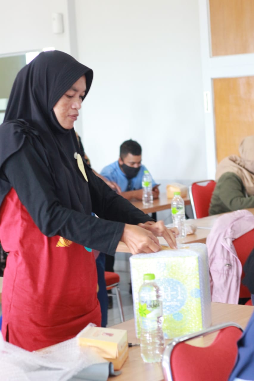 Pelatihan kedua tentang pengemasan produk, dibawakan oleh Nur Avicenia Yusticia Sofianti, S.TP. Beliau adalah Manajer di perusahaan OMAH GEMI yang bergerak di bidang makanan olahan (bakery, olahan bentuk kripik dan lain-lain). Pelatihan ini menjelaskan dan menggambarkan tentang bahan-bahan yang dapat digunakan untuk packaging produk, cara mengatasi agar bahan rentan seperti kripik