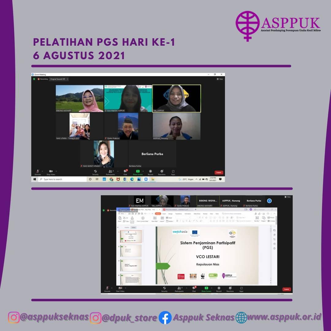 Pagi hari pukul 10.00 WIB, Anggota kelompok ibu-Ibu pembuat VCO di wilayah kepulauan Nias sudah berkumpul dengan antusias untuk mengikuti Pelatihan Participatory Guarantee System (PGS) melalui aplikasi Zoom Meeting, yang diadakan oleh Asosiasi Pendamping Perempuan Usaha kecil_mikro (ASPPUK), sebagai salah satu implementasi kegiatan ASPPUK dalam mendukung gerakan Pangan Bijak Nusantara “Lokal, Adil, Sehat dan Lestari”. Meski mengikuti pelatihan secara bersama-sama dengan berkumpul dalam satu tempat melalui zoom namun peserta tetap menerapkan protokol kesehatan.