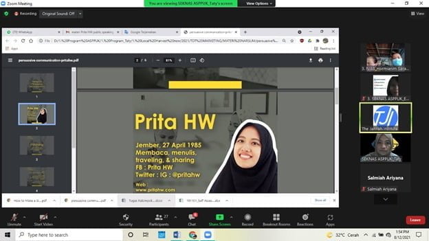 Hari Kedua dan Ketiga Peserta mendapatkan materi dan mempraktekkan tentang Publik Speaking untuk menjual produk secara offline (door to door People to People) materi tersebut di bawakan Oleh Prita HW, Praktisi Public Speaker The Jannah Institute dan Influencer.
