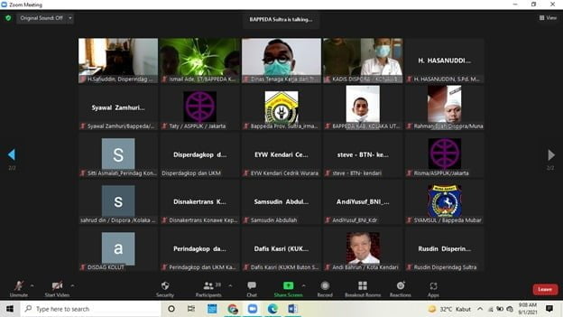 Kegiatan ini dihadiri oleh puluhan peserta yang berasal dari OPD dan stakeholders terkait yang berada di Kota Kendari dari 16 Kab/Kota lainnya secara virtual, 30 orang peserta lainnya menghadiri kegiatan tersebut secara offline tatap muka dengan tetap menerapkan protokol kesehatan, sebelum memasuki ruangan panitia dan peserta melakukan tes antigen.
